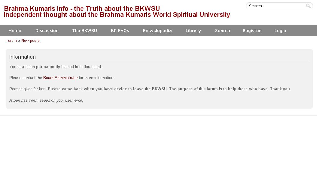 n-b wrote:This is typical brahmakumaris.info policy. When they see the BKs started to dominate the forum, they ban them. It happened with me in the past (see the posts from nischaybuddhi), but the recent posts compelled me to log in with some different name.