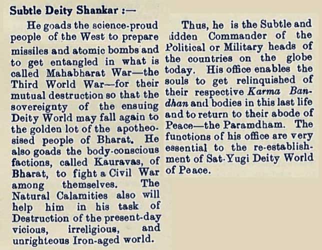 I think it is hard for Westerners to fully understand the extent of Lekhraj Kirpalani's mania because we do not understand the outlandish extremity of his or their claims. He went from claiming he was Krishna and Narayan (