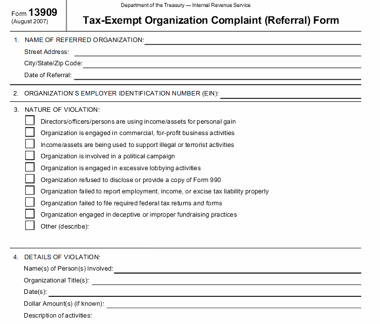 IRS Form 13909 is a one page form that allows anyone – you don’t have to be an American citizen — to report the Church of Scientology and its related tax exempt entities for abuses of tax exemption. Download the form here.