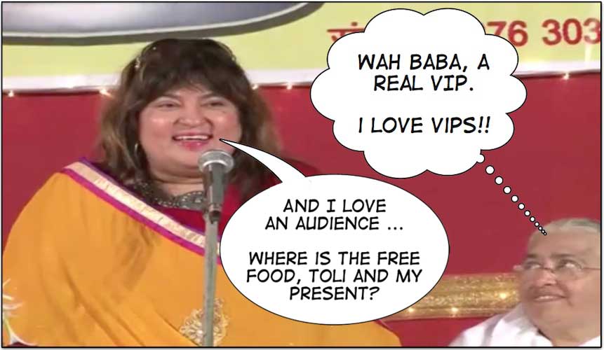 Radhe Maa - who looks like the heavily lipsticked "Courtney Love" of the Hindu Bhakti scene - claims she is innocence whilst the public is outraging at photos and videos of her wearing a short dress and dancing to Bollywood numbers.