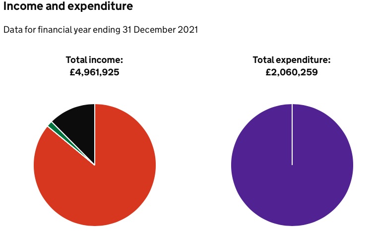 2021 - Total income = £4,961,925, Expenditure = £2,060,259. Profit = £2,901,666
