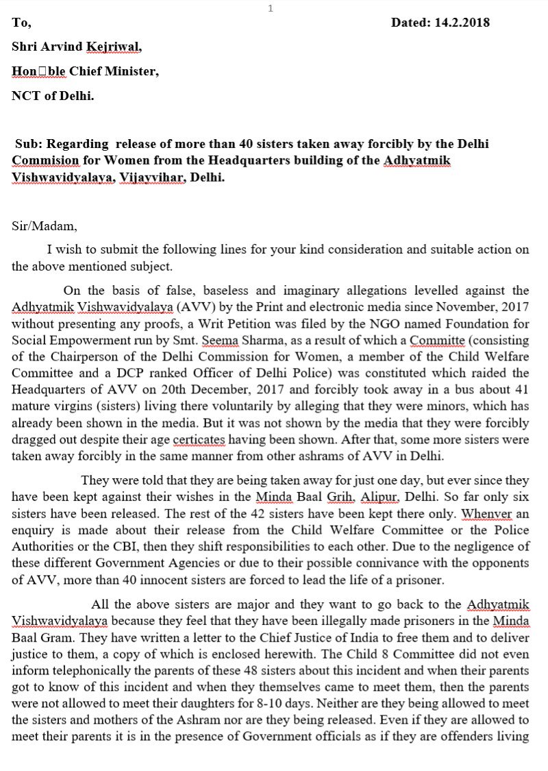 "My daughter was taken to the Bal Gram on the suspicion that she was a minor. However, she was a major when she had gone to the ashram. It has been more than a month but I have met my daughter only twice.