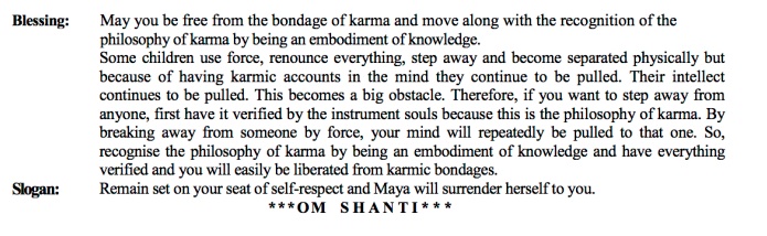 “If you don’t follow Shrimat (BK God instructions) something will go wrong”.