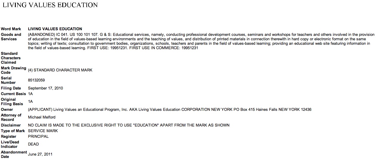 "ALIVE owns the rights to the Living Values Education name, logo and trademark, which it licenses to Associates, and has other intellectual property rights such as with regard to its teacher resource books and other publications and the international LVE website, which it maintains".